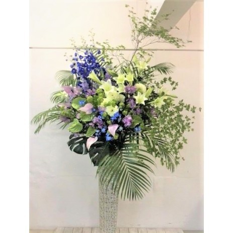 台付きアレンジではスタンド花のようなボリューム感で高さ180〜210cm、幅80〜120cmほどで、背の高い男性と同じ、または見上げるくらいの高さとインパクトを出せます。