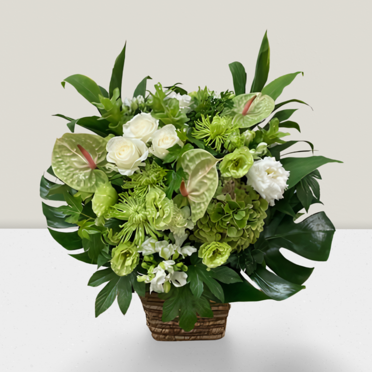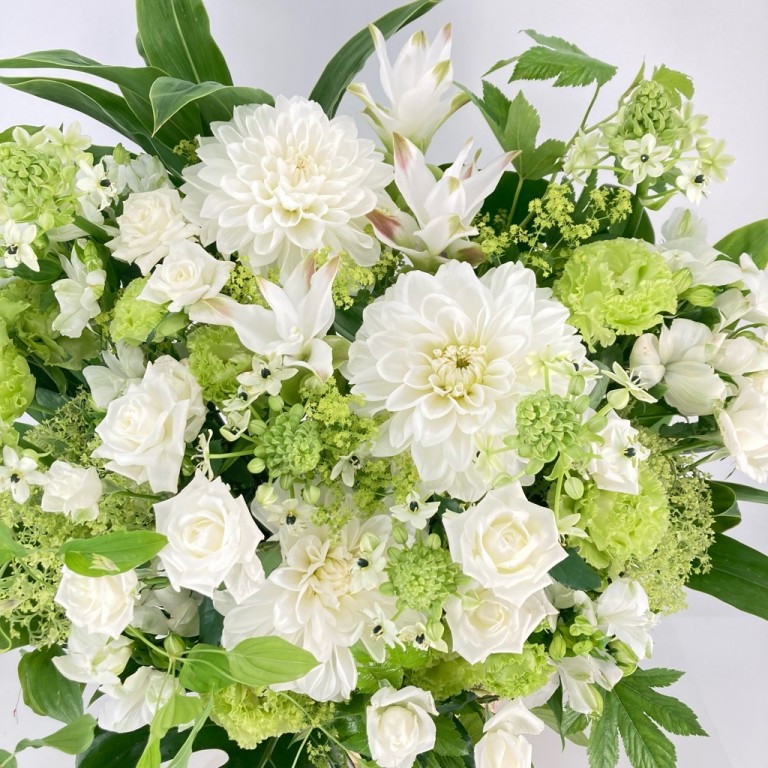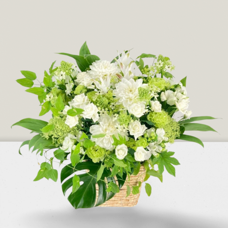 特別な日に華やかなひと時を演出するアレンジメントを贈りませんか。サイズ:W50㎝×H70㎝