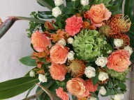 オレンジ系のお花を使用しておまかせでお作りします。