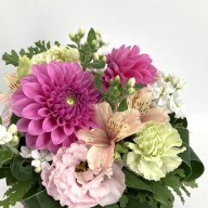 ピンク系のスイートなお花がぎゅっと詰まっています。