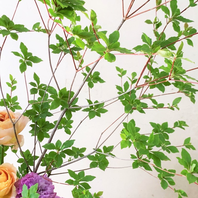 6月おすすめの花材 ドウダンツツジをアクセントにアレンジしました。