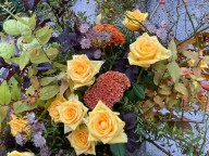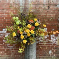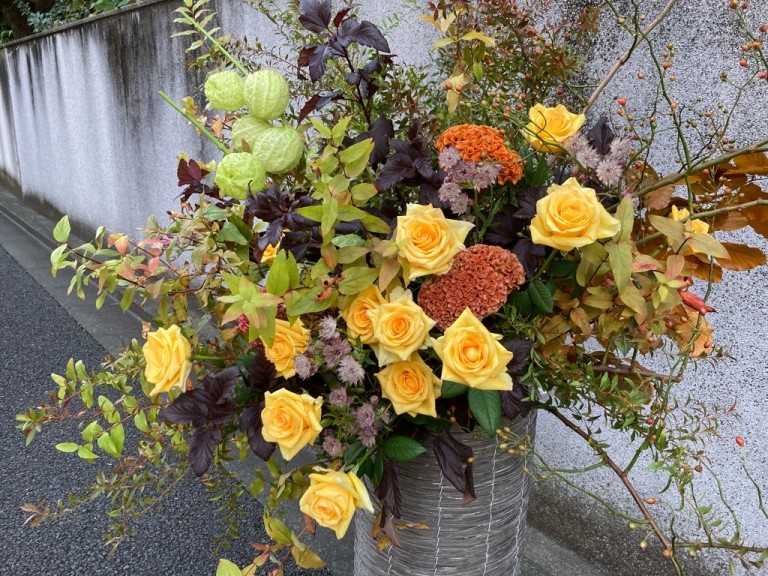 秋の旬の花材をふんだんに使用した台付きアレンジです。