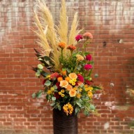 秋の色とりどりのバラや実物も添えて、華やかに作成しました。