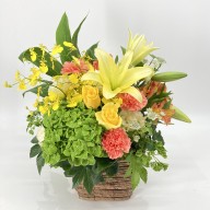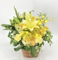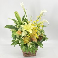 イエロー系おまかせアレンジメント¥11,000(税込) イエローのお花を使用しておまかせでお作りします。