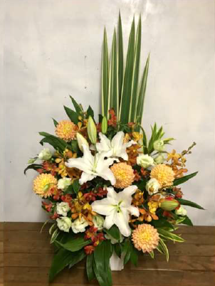 季節を感じる秋のお花をメインに、暖色系のお花をぎゅっと集めてアレンジいたしました。