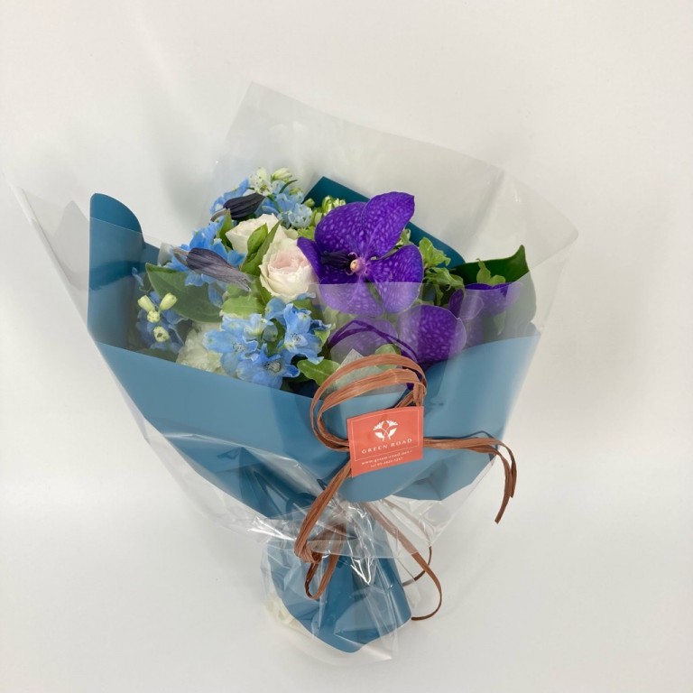 記念日など、記憶に残したい大切な一日のためのギフトにぴったりのブーケです。サイズ:φ25㎝×L25㎝