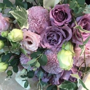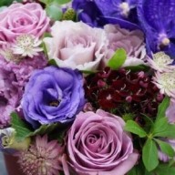エレガントなパープル系の花でお作りする、気品溢れるお祝い用のブーケです。