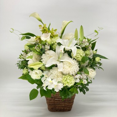 お供え用のアレンジメントでお悔み、法要の際にご利用いただけます。