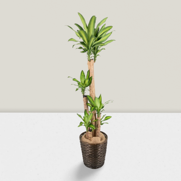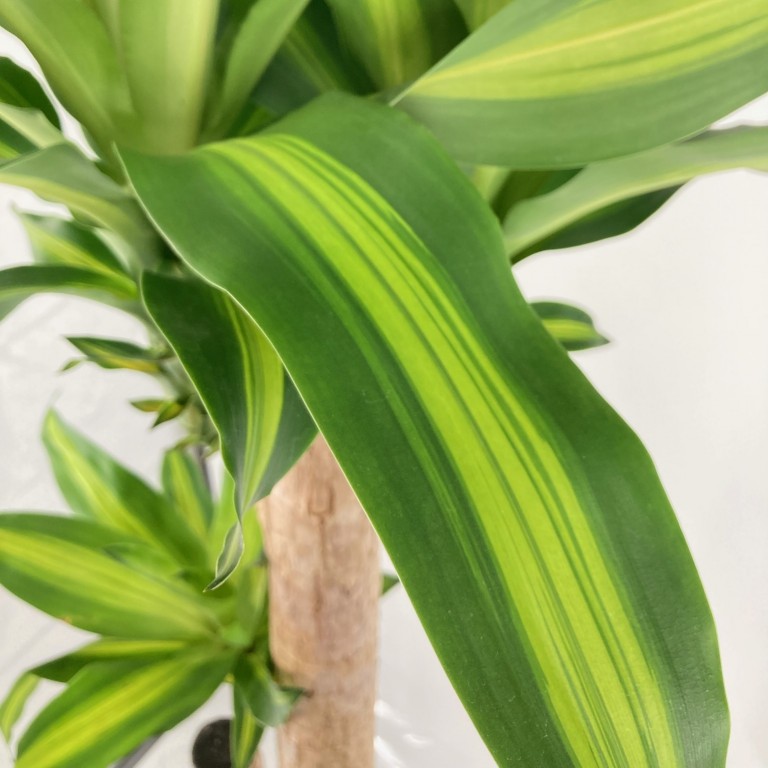 マッサンは、「幸福の木」とも呼ばれ、木らしい太い幹から生える黄色の斑の入ったやさしいグリーンの葉っぱという樹姿が人気です。NASAが認証している空気浄化の効果がある観葉植物としても注目されており、育てやすく、ポピュラーなので男女問わず贈り物として人気の高い商品です。