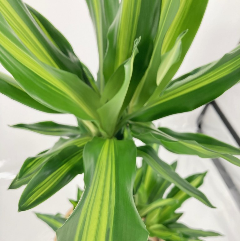 幸福の木のなかでも珍しいドラセナ・ジェレは濃い緑色に黄緑色のラインが真ん中に入った美しい葉を持ちます。乾燥に強く、明るい場所を好むためインテリアプランツとしてもおすすめです。また、細身で横へ広がることなく成長していくため、室内でも場所をあまりとりません。