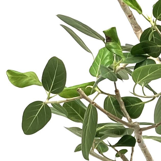 ベンガレンシスは丸みを帯びた葉と、独特の曲がりがある樹形がおしゃれな観葉植物です。幹は成長していくにつれて白くなる特徴がありますので、成長を楽しむことができます。