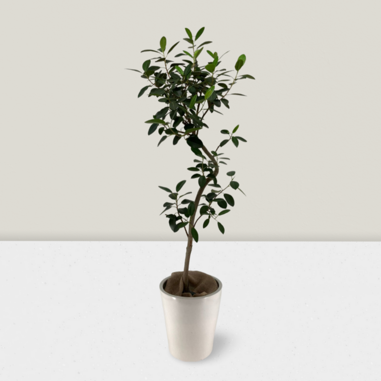 フランスゴムの木は、丸みのある葉がうっすらと茶色い毛で覆われているのが特徴で、幹や枝がしなやかに曲がっている様子が魅力的な観葉植物です。 一般的なゴムの木と比べ葉が小さく、生命力があり、特別なお手入れも必要としないため初心者の方でも育てやすい品種です。