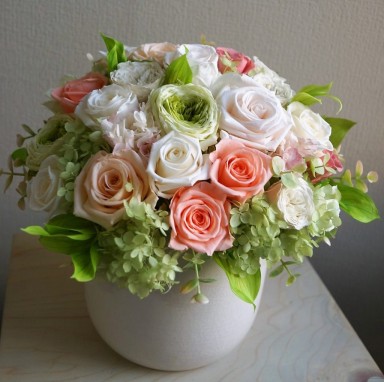 ![]()  優しい雰囲気が可愛らしいプリザーブドフラワー プリザーブドフラワー高さ18cm × 幅18cm/O-038 ¥16,500(税込)