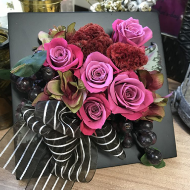 ![]()  壁かけも立ててもOK!お部屋を華やかに彩ります プリザーブドフラワー高さ15cm × 横15cm/P-020 ¥5,500(税込)