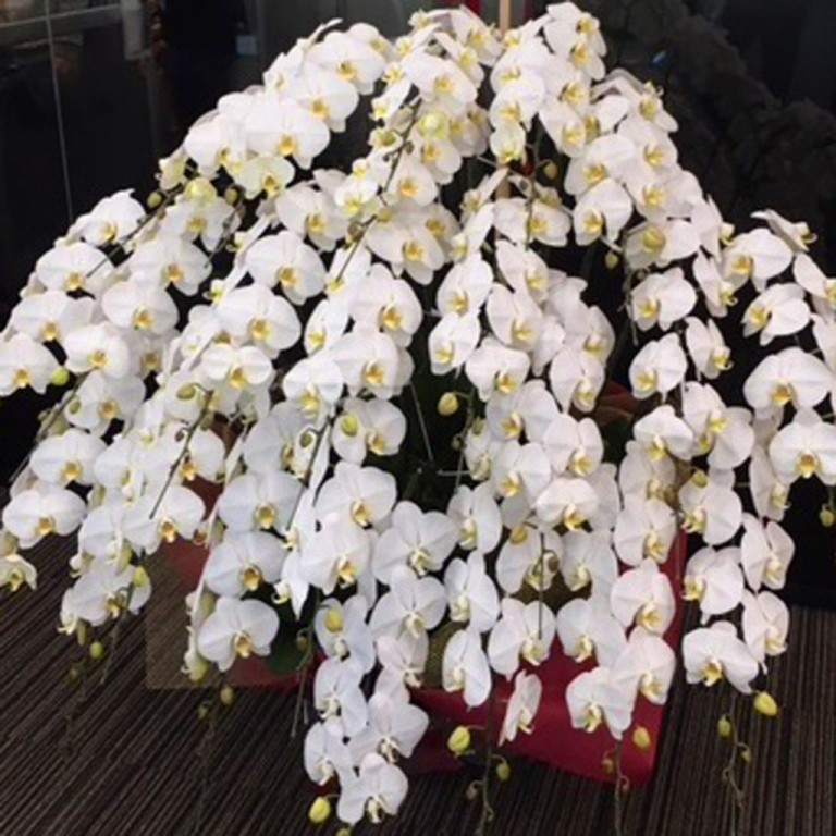 法人様ギフトの定番、白胡蝶蘭が260輪以上と存在感抜群の一鉢です。