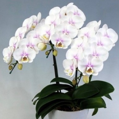 白い花びらの中心だけほんのりピンクのかわいい胡蝶蘭