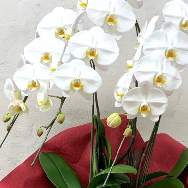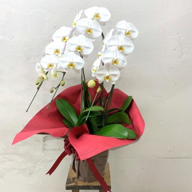 プライベートならミディ胡蝶蘭アマビリスがおすすめです。 母の日、敬老の日、引越し祝いなど自宅でもスペースを気にしないのが魅力のひとつでしょう。 こぶりながら胡蝶蘭の華やかさをしっかり兼ね備えた自慢の一品です。 定番の白は誰からも愛される色なので、何を贈るか迷われてる方にもおすすめです。