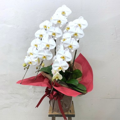 人気の理由大輪3本立ちの胡蝶蘭です。 店舗の開業やクリニックの開院祝い、 大切な方のお誕生日祝いなど、 特別な記念日に。 ※お花は大輪ですが、少々小さめの規格となるので、 企業様宛としてオフィスにお送りするには、 見劣りしてしまう可能性がございます。