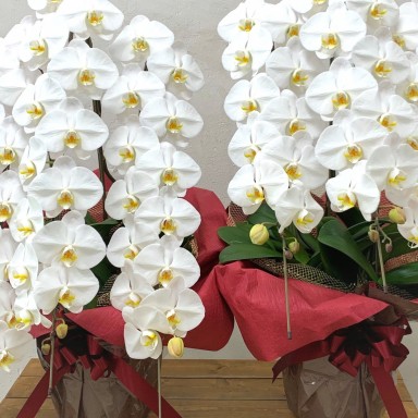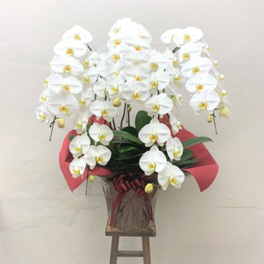 人気の理由就任祝いや大事な取引先の方へ贈る法人ギフトとして人気の高い商品です。圧巻のボリュームと存在感で他の胡蝶蘭と並んでも目にとまる美しさで「いつもの5万円」とご指名されることも多い商品です