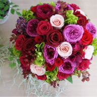 花束贈呈の際にもプリザーブドフラワーが選ばれることが増えてきました。本物の生花のような質感で長持ちすることはもちろん人気の理由ですが、色のアレンジが自由にできるのも人気の一つです。 プリザーブドフラワーは特殊な染料につけて作りますので、店頭ではあまり見かけない青いバラなども作ることができます。また、自然には存在しない色にも染めることができますので、ご両親の好きな色のアレンジも作ることができますよ!