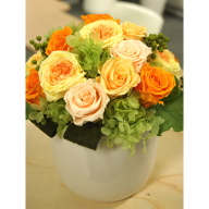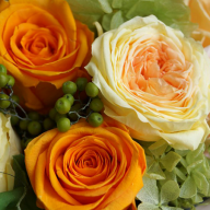 やわらかな黄色やオレンジ系でまとめられたプリザーブドフラワー。あらゆるお祝いのシーンにマッチする色合いです。飾るだけでお部屋が明るい雰囲気になります。