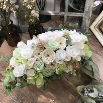 落ち着いた雰囲気の白グリーン系のアレンジ