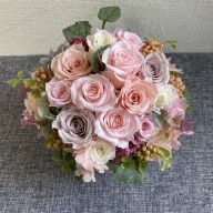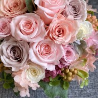 ピンクバラの花をメインにニュアンスカラーでまとめたプリザーブドフラワーです。