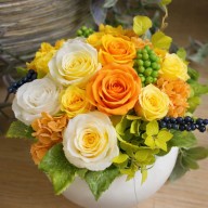 イエロー系のお色味のプリザーブドフラワーアレンジです。