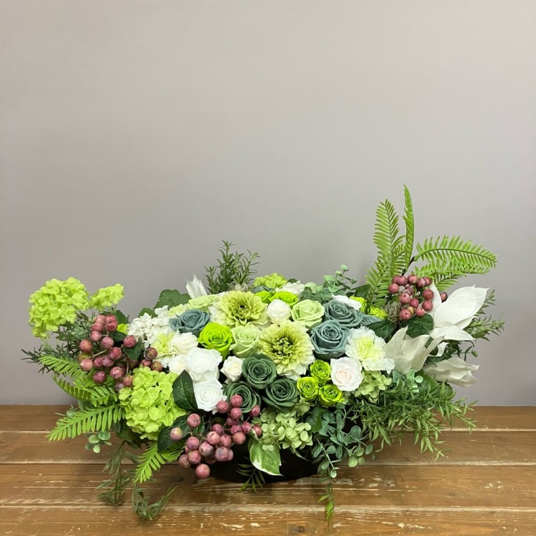 ホワイト・グリーン系おまかせプリザーブドフラワー【横長タイプ】