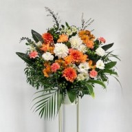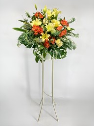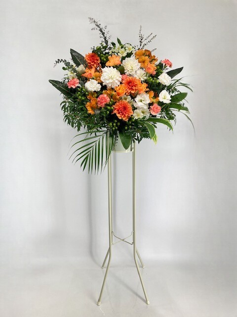 新たな門出となる開店を華やかにお祝いする、スタンド型のアレンジメントです。サイズ:H180㎝×W90㎝