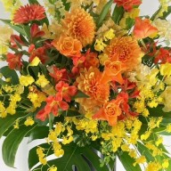 オレンジ系のお花を使用しておまかせでお作りします。