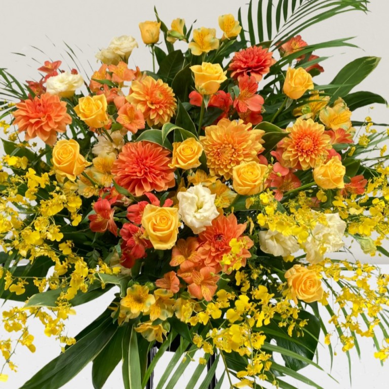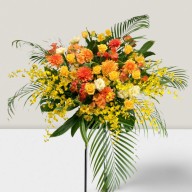 新たな門出となる開店を華やかにお祝いする、スタンド型のアレンジメント。