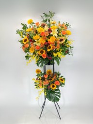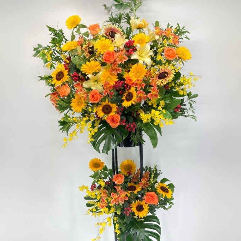 新たな門出となる開店を華やかにお祝いする、スタンド型のアレンジメント。