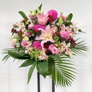 スタンド型のアレンジメントです。サイズ:H180㎝×W90㎝