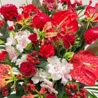 レッド系のお花を使用しておまかせでお作りします。 こちらはフローリストおまかせ商品ですので、 花材とテイストのご指定はお受けできません。 新たな...